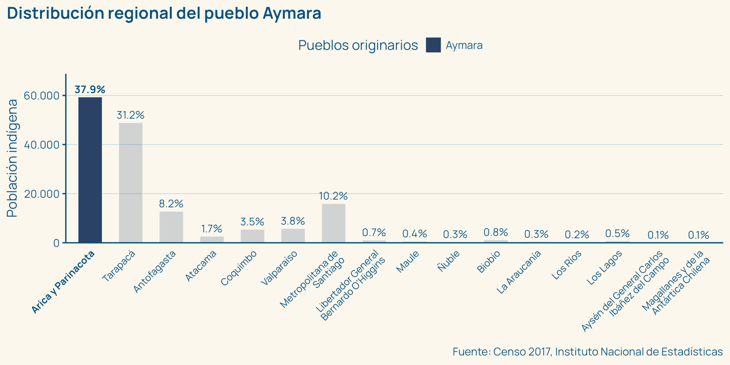 En la Región de Arica y Parinacota, está presente el 39,3% de la población que se reconoce Aymara