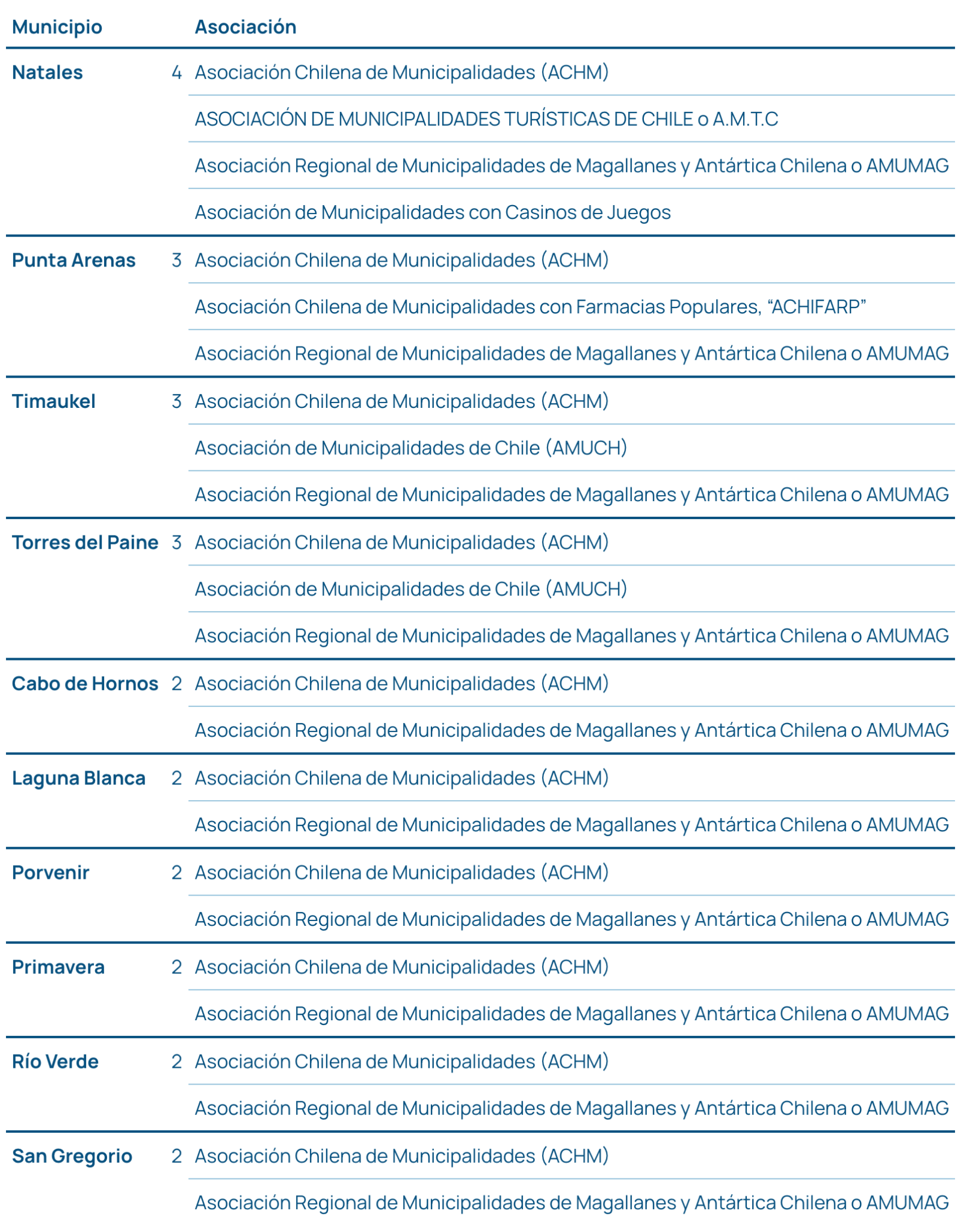 ASOCIACIONES MUNICIPALES CON PRESENCIA EN LA REGIÓN